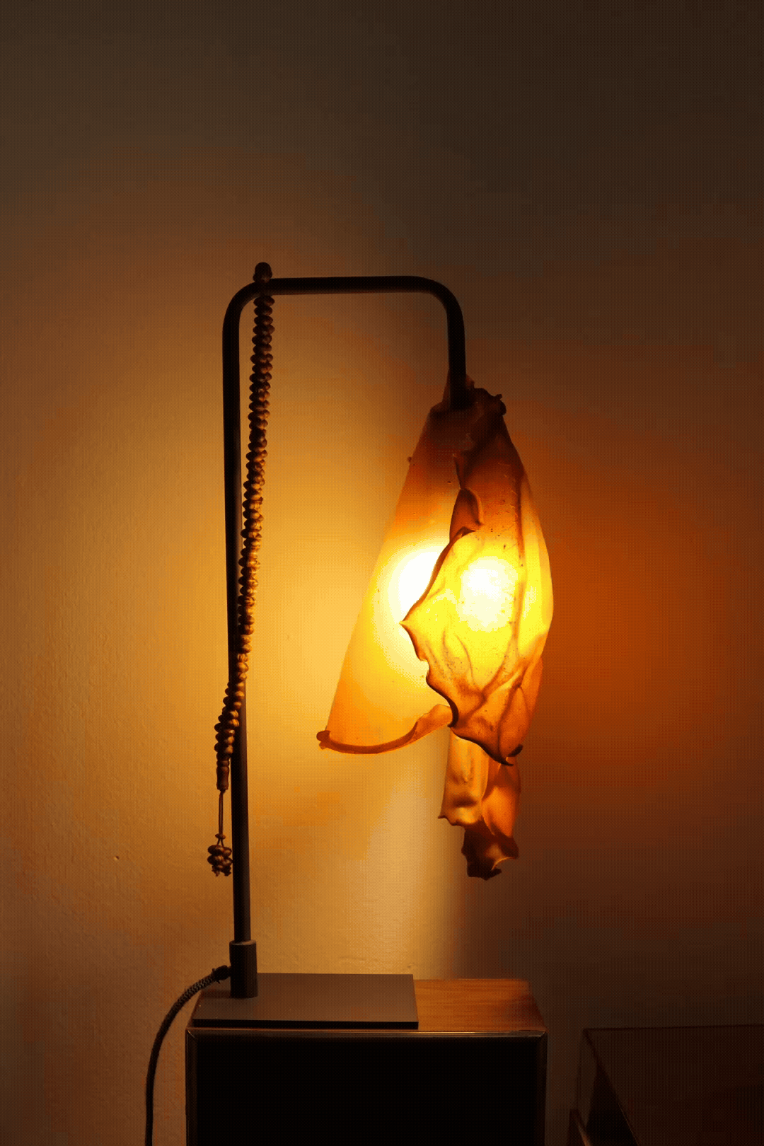 Materials: Bioplastic, Natural Dyes, Willow Vines, Wood Frame